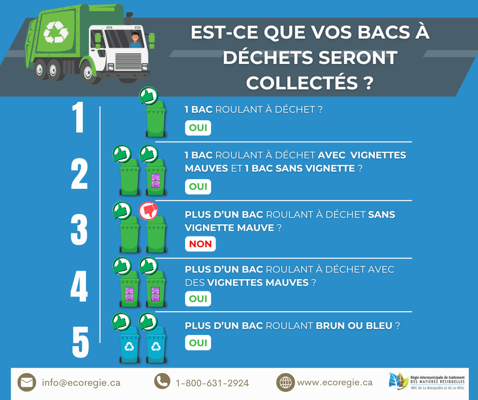 Depuis le 1er janvier 2026, la tarification incitative des déchets est mise en place dans les MRC de La Matapédia et de La Mitis. Les bacs roulants supplémentaires doivent être identifiés par une vignette, tandis que les conteneurs sont facturés selon leur taille et la fréquence de collecte. Une période de grâce est prévue jusqu’au 31 janvier 2026.